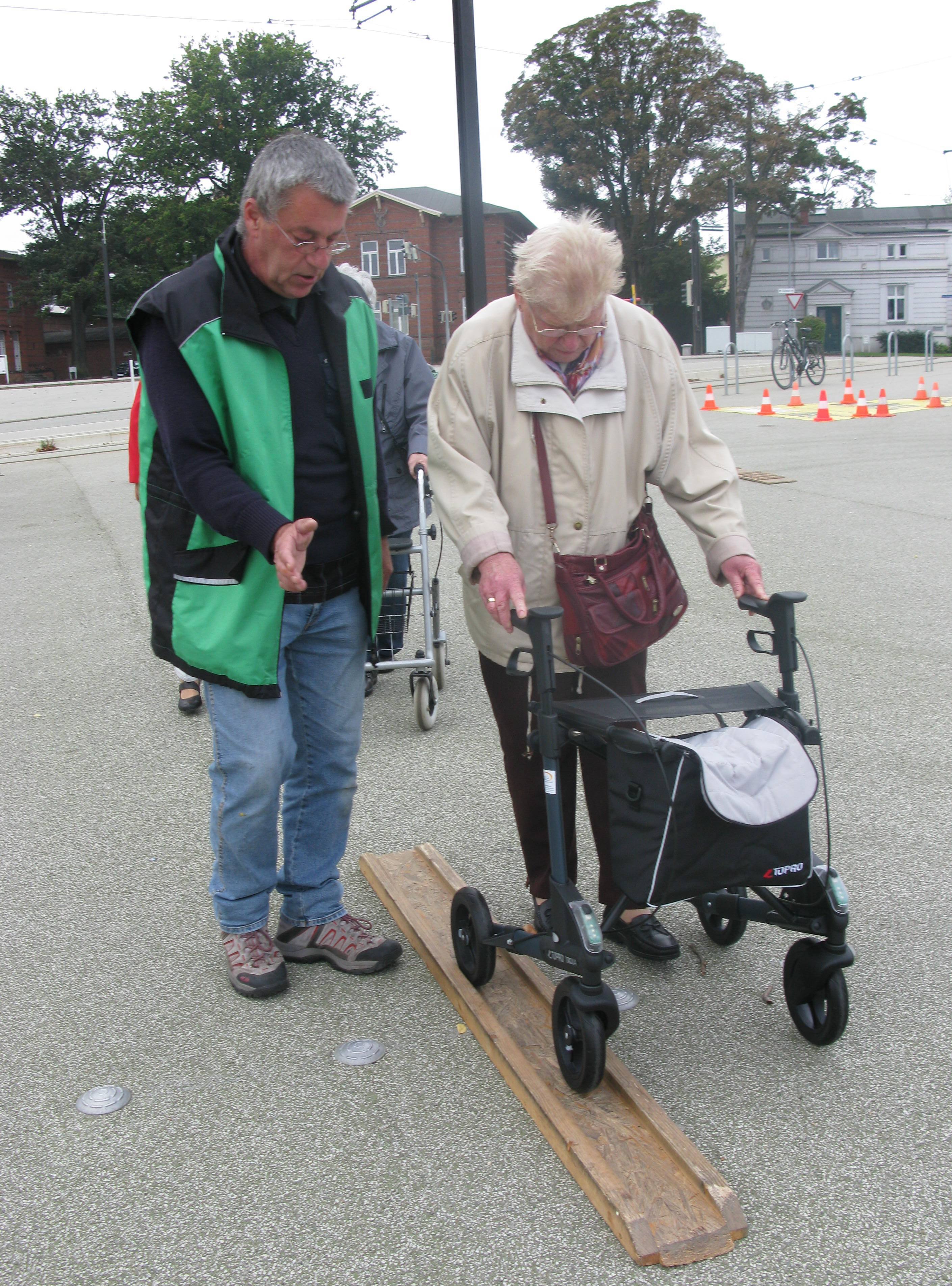 Das Projekt wird beispielsweise in Schwerin durch die Nahverkehr GmbH Schwerin maßgeblich begleitet. Hier holt der Bus am Veranstaltungstag die Teilnehmerinnen und Teilnehmer von einer Haltestelle im Wohngebiet ab. An einer ruhigen Haltestelle wird ohne Zeitdruck das Ein- und Aussteigen geübt. Es werden Fragen beantwortet zur bestmöglichen Platzierung im Fahrzeug, dem sicheren Abstellen des Rollators und zu den im Bus befindlichen Hilfsmitteln. Ein Sanitätshaus prüft – wenn die Teilnehmer dies wünschen – an den Rollatoren zum Beispiel die Einstellung der Bremsen und die Griffhöhe. Bei einer Tasse Kaffee wird über sicheres Verhalten im Bus und in der Straßenbahn diskutiert. Die Polizei beantwortet Fragen zur Verkehrssicherheit und zum Schutz z.B. vor Handtaschendiebstahl. Vorgestellt werden empfehlenswerte Mobilitätshilfen. Zeit ist auch für persönliche Fragen, um Erfahrungen auszutauschen und Anregungen zu geben, wie älteren Menschen das Fahren mit Schwerins Verkehrsmitteln erleichtert werden kann. Nach etwa drei Stunden bringt der Bus die Teilnehmerinnen und Teilnehmer zu „ihrer“ Haltestelle zurück.