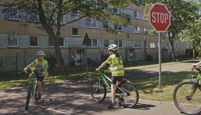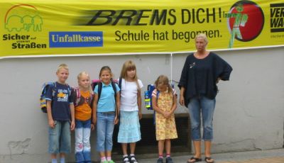 Die leuchtend gelben Spannbänder zum Schulanfang werben zumeist in der Nähe von Schulen als auch Durchgangsstraßen für besondere Rücksichtnahme im Straßenverkehr. Die Standorte wählen die Verkehrswachten mit der Polizei und der Ordnungsbehörde aus.