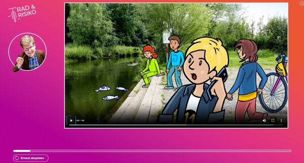 Im Anschluss an den Krimi erklärt „Lehrer Schröder“ den Lernenden, welche Antworten richtig sind – und warum. Das webbasierte Angebot soll dazu beitragen, dass sich Kinder Risikosituationen vor Augen führen, die ihnen mit dem Fahrrad im Straßenverkehr jederzeit begegnen können.