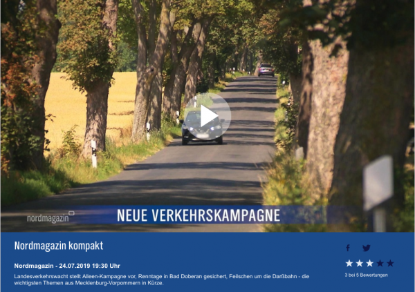 Die Alleen-Kampagne, gestartet 2019, wird 2022 fortgesetzt, mit Landstraßenplakaten an 107 Standorten sowie Aktionen und Medien zu Wildunfällen. Die Region Malchow war Drehort eines berührenden Wildunfall-Videos. Ab 2023 folgen weitere Themen. Finanziert wird die Kampagne aus Mitteln der Verkehrssicherheitskommission.